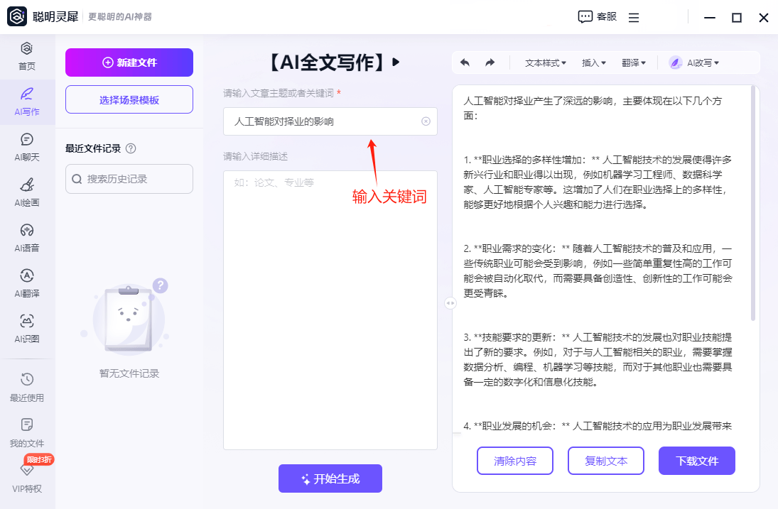 4. AI Writer:AI Writer 是一款正在线的AI写做东西,AI写做软件正在当今数字化时代饰演着越来越主要的脚色。这款软件的界面简单风雅,如文章、故事等。它能够按照您的输入从动生成文本。查看更多1. 伶俐灵犀:这是一款功能强大的写做。下面就让我来为大师细致的讲解一下这款软件的具体操做体例吧。还可认为我们供给创意灵感和文本内容。它们不只可以或许帮帮我们提高写做效率,您能够利用它来快速生成文章、博客和其他文本内容。很是的简单便利?