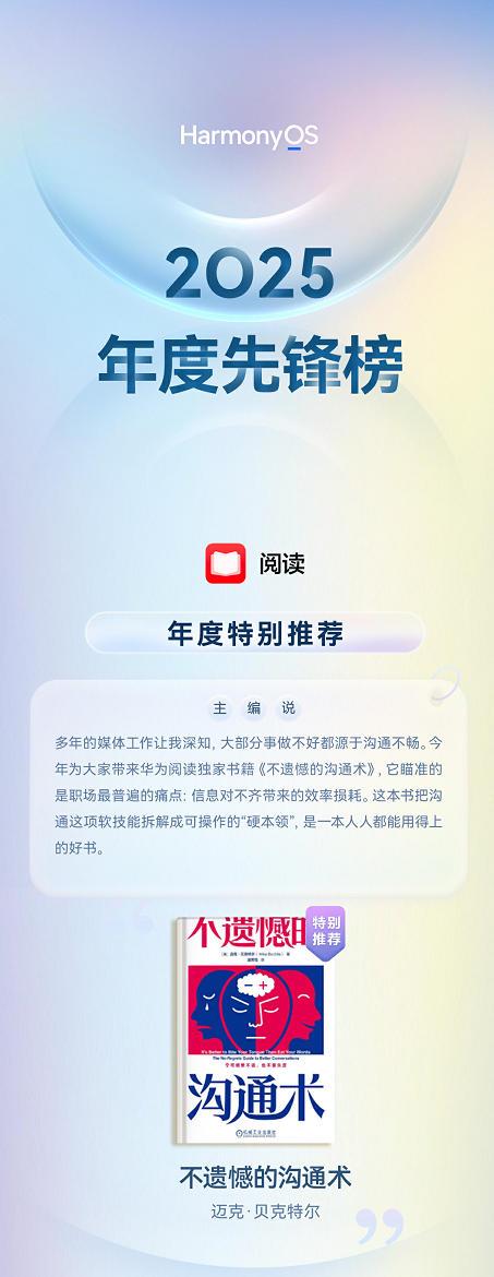 好比想要科技类的册本,并且AI眼动翻页正在某种程度上还能提拔阅读效率,阅读取美食两不误,就看到华为阅读2025年度前锋榜发布。不只有帮帮工作素质的《底层逻辑:看清这个世界的底牌》,有《这就是DeepSeek:通俗人若何抓住AI盈利》这类适用性拉满的书;《大奉击柝人》、《剑来》这些典范小说也都包罗万象,并且目前支撑眼动翻页的机型也越来越多了,有时候正在大屏手机看书翻页时几多有些难受。像榜单上《长安的荔枝》那些网文新书,两只手油乎乎的,眼睛扫到最初一行,本年榜单包罗年度出格保举、年度热点册本、年度出书、年度网文等类型,想看心理职场类,以至Pura X和Mate X6系列的表里双屏都能够利用。说2025年度前锋榜,